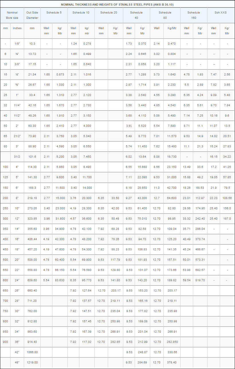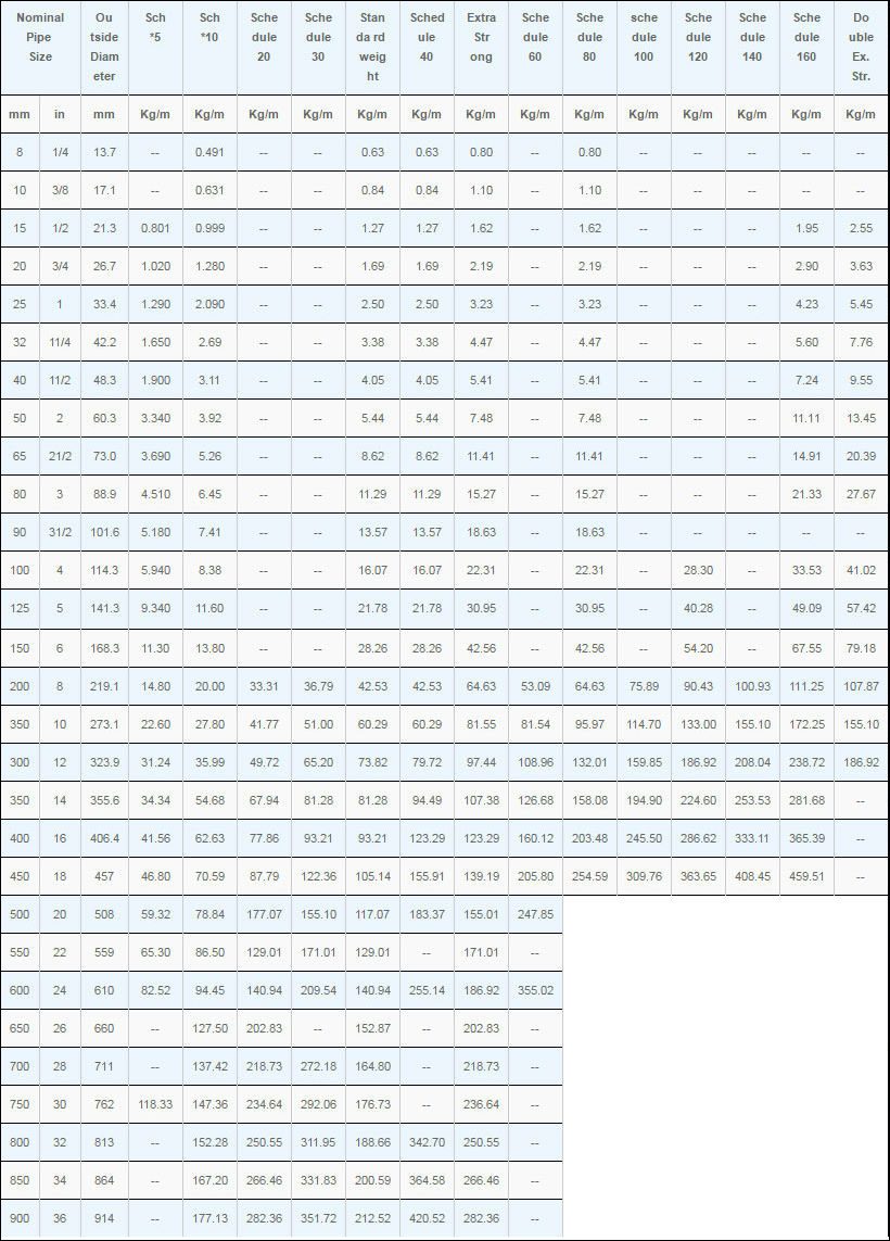 OD(mm)-W.T. (mm) XW.T.(mm) x 0.0082=Kg per Mtr.